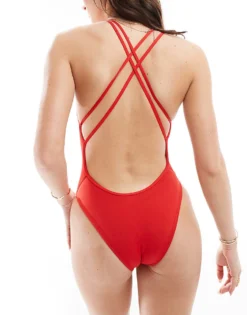 Nike Swimming Hydrastrong Spiderback Tight Fit Performance Swimsuit In University Red For Women